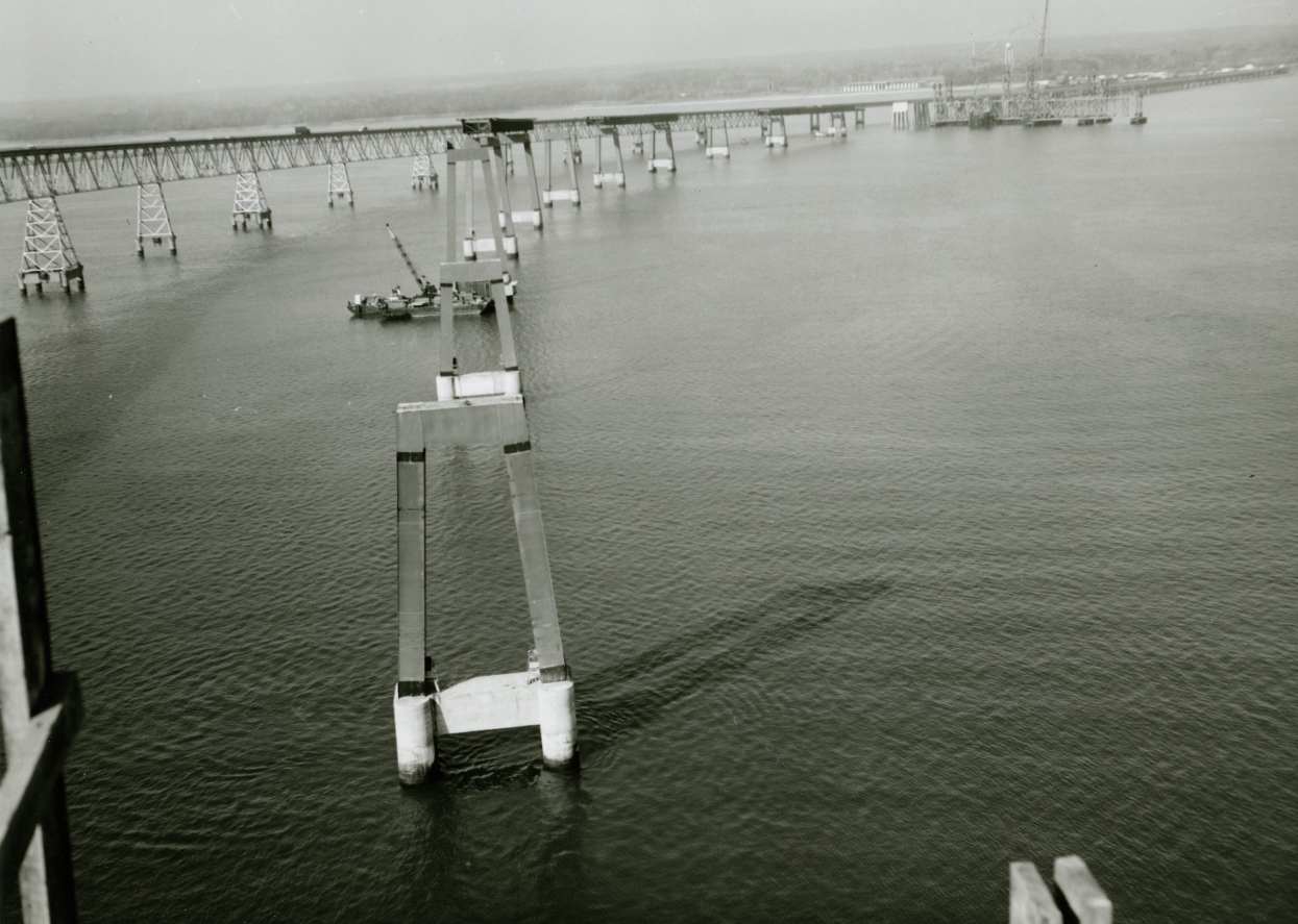 At four miles, the spans are among the world’s longest and most scenic over-water structures. The original span opened in July 1952 and provides a two-lane roadway for eastbound traffic. The parallel structure opened in June 1973 and has three lanes for westbound travelers. During periods of heavy eastbound traffic, one lane of the westbound bridge is reversed to carry eastbound travelers (“two-way” traffic operations).