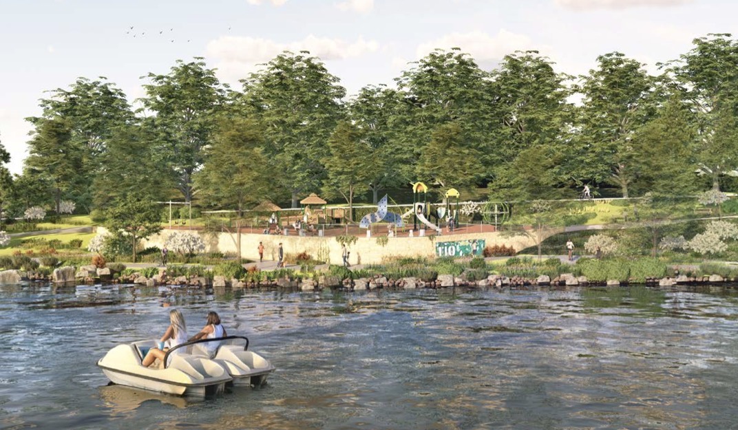 This site sits near the boardwalk, Boomerang boats, and the walking path that wraps around the lake.