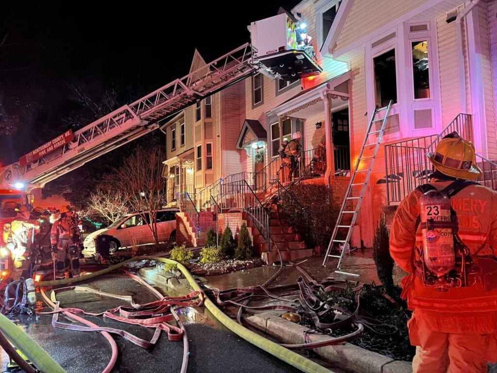 An update at 7:40pm confirmed the fire originated in the kitchen on the second level of the three-story townhouse in the Town and Country townhouse community. The fire was extinguished, and approximately 60 MCFRS firefighters responded to the scene. One firefighter was evaluated for illness, but no other injuries were reported.