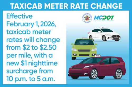 Beginning February 1, 2026, Montgomery County taxicab rates will increase from $2 to $2.50 per mile, and a new $1 nighttime surcharge will apply for trips between 10 p.m. and 5 a.m., marking the first meter rate change in more than 15 years.