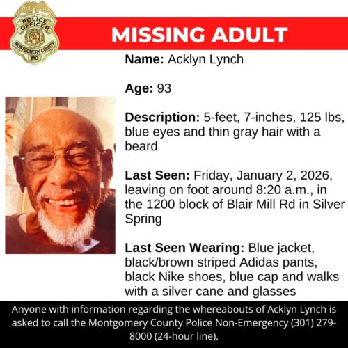 Detectives from the Montgomery County Department of Police – 3rd District Investigative Section are asking for the public’s assistance in locating Acklyn Lynch, a missing 93-year-old.