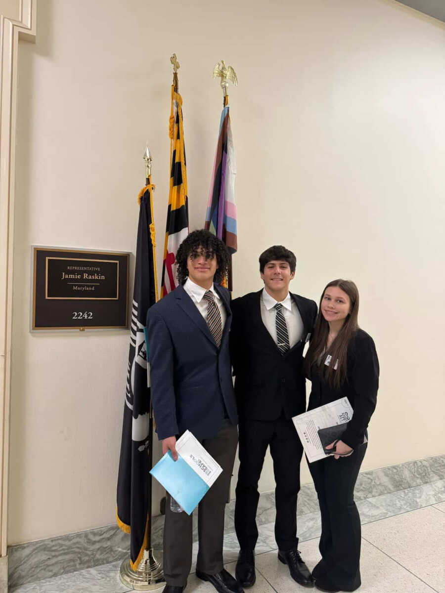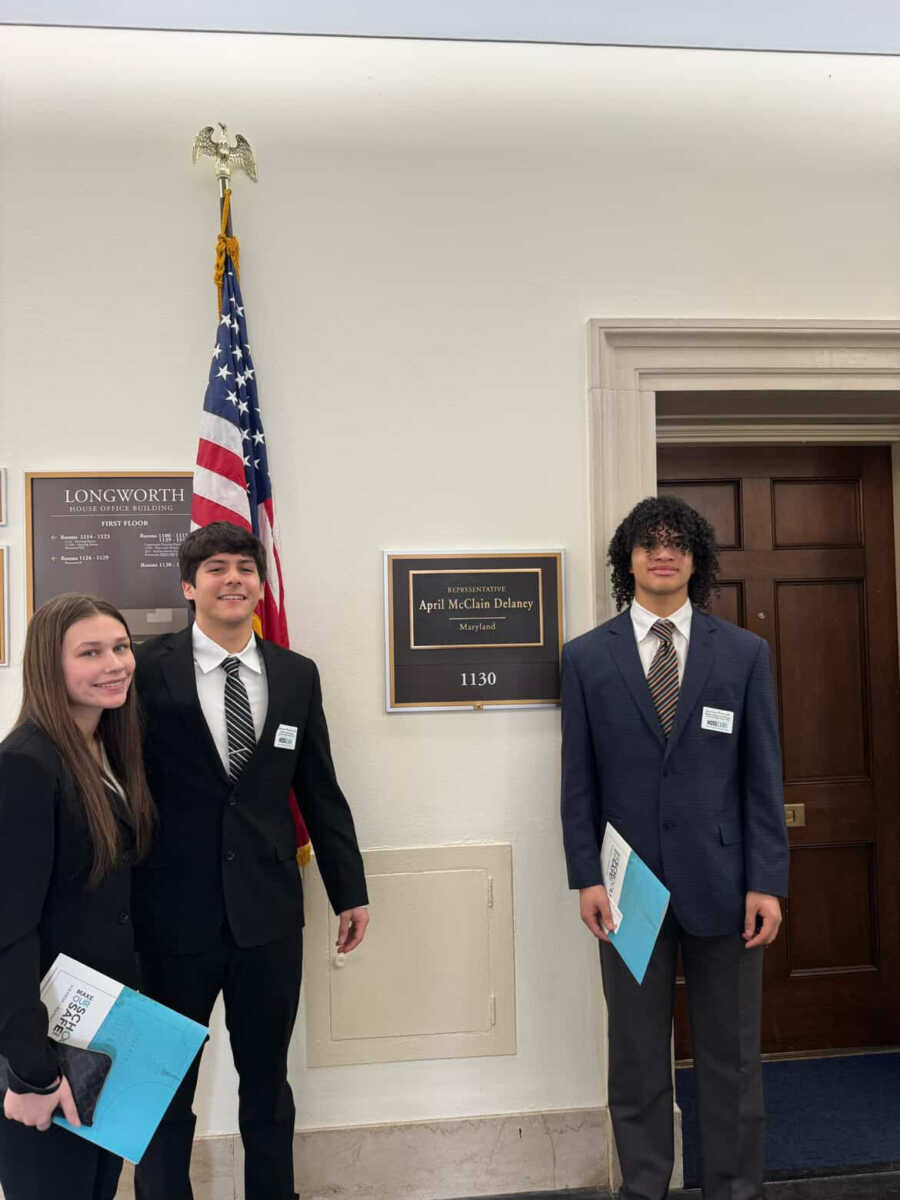 Leaders of Sherwood’s MOSS club, Make Our Schools Safe, spent a day last week meeting with lawmakers to advocate for Alyssa’s Law, legislation designed to reduce emergency response times during school crises. The student leaders included senior Hector Morales and juniors Jeremy Petrash and Claire Strosnider, who traveled to Washington, D.C. to share the importance of the proposal and the student perspective on school safety. The club is sponsored by Sherwood teacher Michele Bloom.