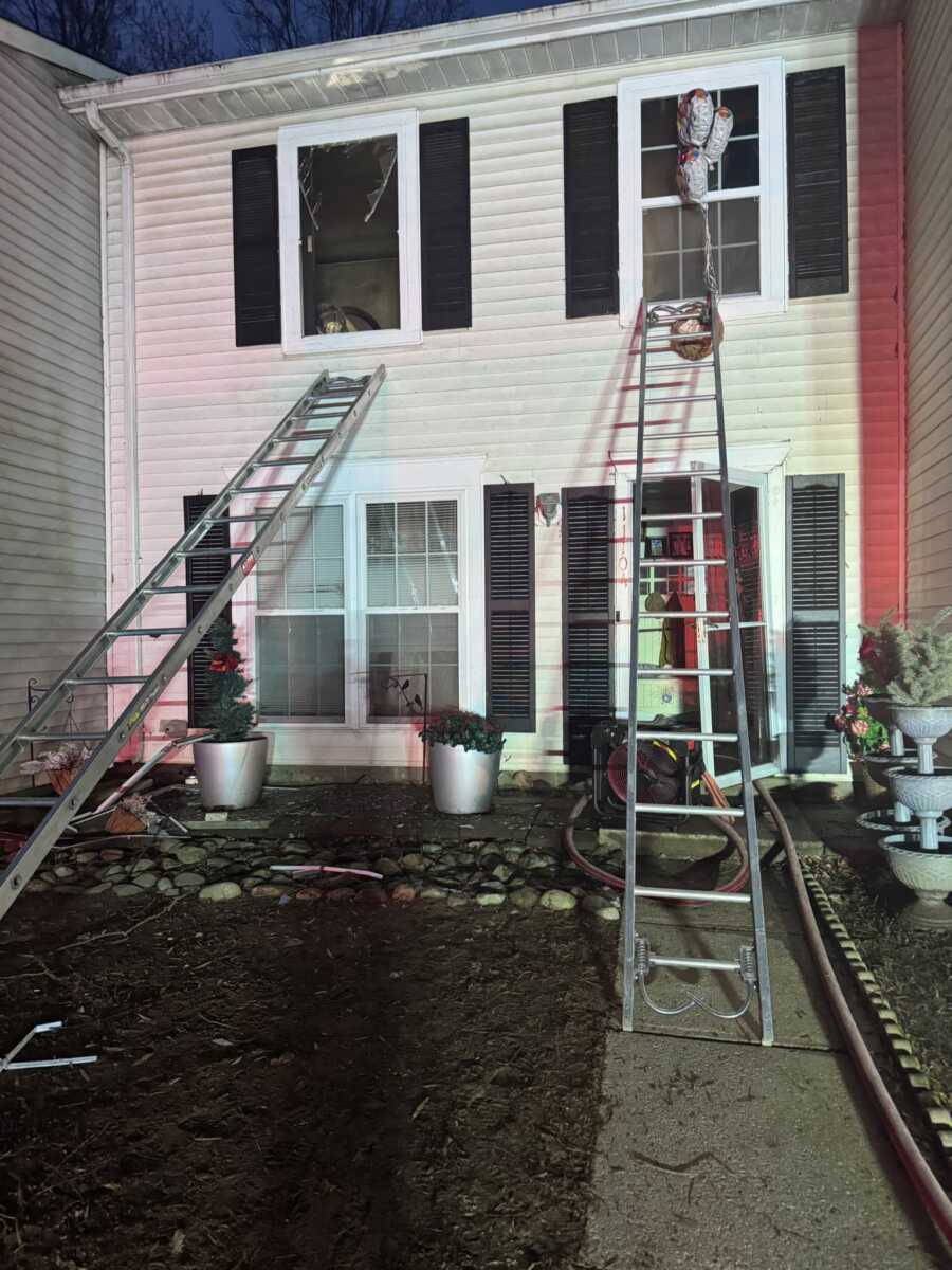 Firefighters were dispatched at 6:08pm to the 11100 block of Black Forest Way near Wheatfield Terrace for a reported fire in a second-floor bedroom of a two-story middle-of-row townhouse.