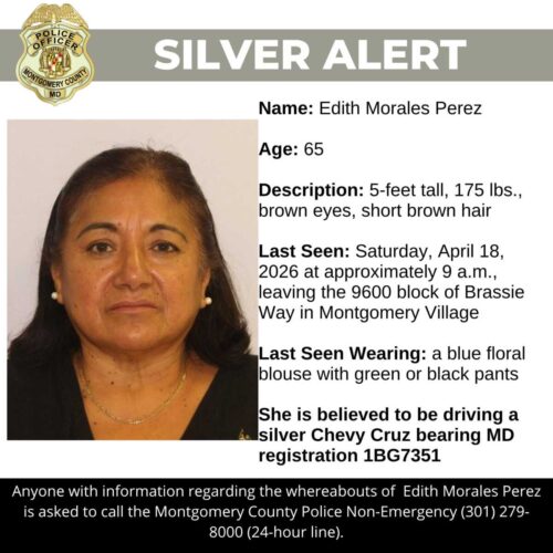 Anyone with information regarding the whereabouts of Edith Morales Perez is asked to call the Montgomery County Police Non-Emergency (301) 279-8000 (24-hour line).