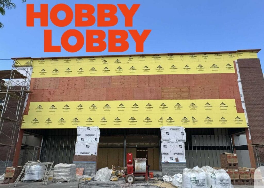 Construction continues to progress at the future site of Montgomery County’s first Hobby Lobby, located at 15750 Shady Grove Road, where “coming soon” signage has also been installed.