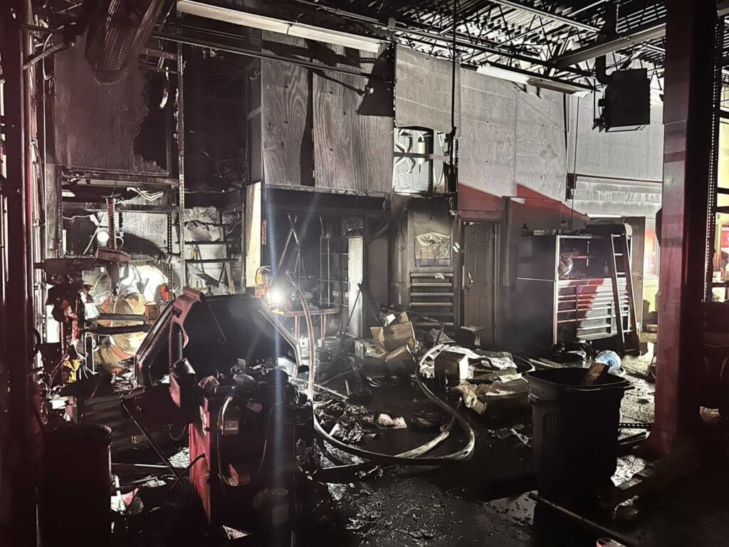Upon arrival, crews located a commercial building fire at a Jiffy Lube with flames extending through the roof. The fire was quickly extinguished, and no injuries were reported.