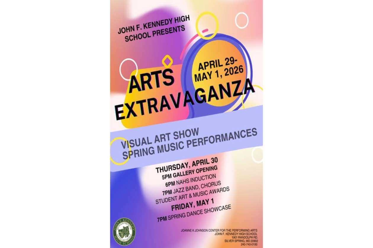 Join us for an evening where Kennedy’s artists and performers take center stage! The 4th Annual Arts Extravaganza on April 30, 2026 showcases the best of our visual and performing arts programs. Hundreds of artworks will be on display from all levels of our visual arts programs (IB Art, Studio Art, Fashion Design, Digital Art, Photography and Sculpture). Doors open at 5 pm and performances by our talented Jazz Band and Chorus start at 7 pm. The event will take place at the Joanne K Johnson Center for the Performing Arts at JFK High School, 1901 Randoph Road in Silver Spring.
