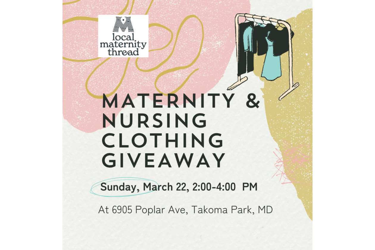 Local Maternity Thread is hosting a Maternity & Nursing Clothing Giveaway on Sunday, March 22, 2:00-4:00 PM. All are welcome! You are welcome to bring clothing to donate as well but don’t need to bring in order to take clothing. Thanks to generous neighbors, there is plenty of clothing for everyone!